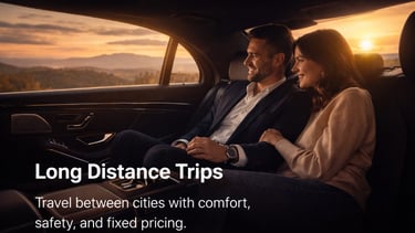 We provide fast, safe, and comfortable rides including airport transfers, city trips, business travel, and long-distance journeys.